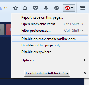 Du kan laste ned AdBlocker via denne lenken. Når installasjonen er ferdig og du går til nettstedet moviemakeronline.com, vil et vindu dukke opp med en forespørsel om å slå av utvidelsen som blokkerer annonser på siden. Alt gjøres på samme måte som i de forrige nettleserne: