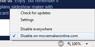 Den gratis annonseblokkereren slås av på nettstedet moviemakeronline.com på denne måten: